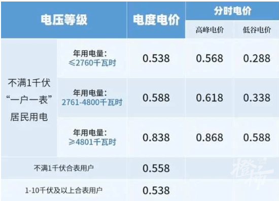 看表可知,第一档和第二档电价差别不大。第三档比第一档,每度电贵出0.3元。假设两个家庭12月都用了一千度电,第三档计费的要比第一档贵出300元左右。