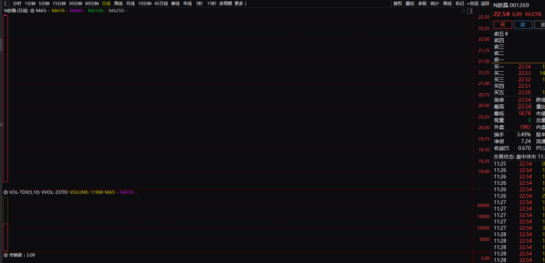 凡拓数创上午盘中一度达到32元,照此计算,中一签新股盘中最大浮盈3375元。