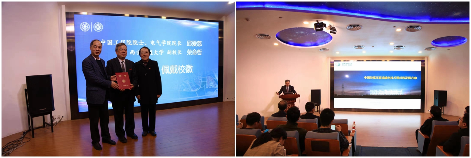 当天下午,荣命哲副校长代表西安交通大学为国家电网有限公司刘泽洪副总经理颁发了“西安交通大学兼职教授”聘书。刘泽洪副总经理为交大电气师生作了题为《中国特高压直流输电技术现状及发展趋势》的学术报告,受到了交大师生的热烈欢迎,与会师生反响热烈,深感受益匪浅。