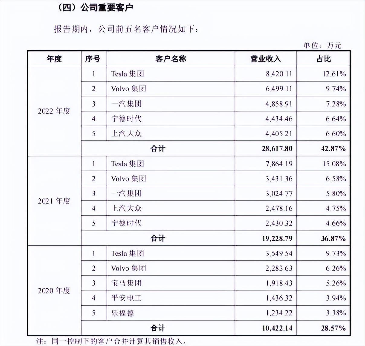 报告期内,荣泰电工第一大客户一直是特斯拉,产品主要为新能源汽车安全件产品。