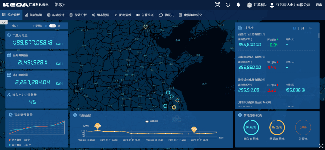 当电力大数据成为新型金融介质,银行不再直接面对众多的小微企业,银企之间信息不对称问题被打破,大幅度节约了沟通成本。透过电力大数据,可高效而灵敏地洞察公司运营和生产状况,打破银行、企业之间的信息壁垒。对银行而言,能够大大减少贷款成本和风险、减少管理成本、优化投资策略、减少不良贷款,最终增加利润。对用电企业而言,优质公司能够更快地获取更多的贷款额度,进而扩大生产、更好地发展。在银行的贷款审核过程中,科达智慧能源可提供用电水平、电量波动、电量趋势等几个维度的用电信息,反映企业的生产经营状况以及该企业在本地区、本行业中用电排名变动情况,能够在一定程度上帮助银行更加快速、精准放贷,破解企业融资难、授信慢等难题。贷后风险预警同样分为用电水平、电量波动、电量趋势等维度,更强调了数据的及时性和颗粒度。