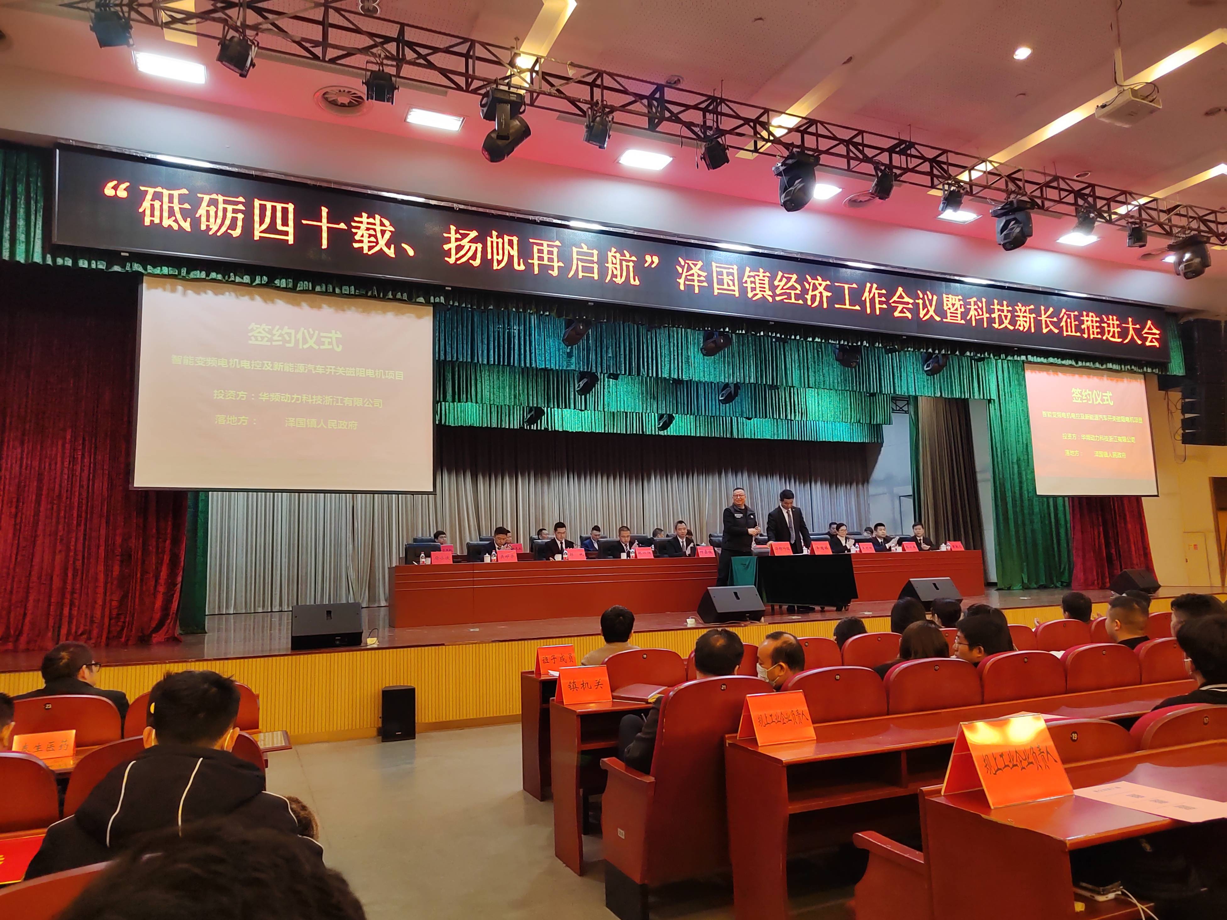 2023年2月17日,华频控股与台州市招商引资落地签约典礼在台州湖泽镇举办。集团旗下华频(浙江)动力科技有限公司落户台州湖泽,就智能变频电机电控及新能源轿车开关磁阻电机项目打开深度协作。