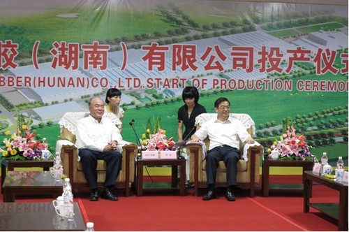 此次投产仪式上,湖南省委书记、省人大常委会主任周强会见了日本住友橡胶工业株式会社社长池田育嗣一行,并出席投产仪式宣布产品投产;湖南省委常委、长沙市委书记陈润儿在仪式上致辞,省委常委、省委秘书长易炼红也莅临现场。池田育嗣代表住友橡胶感谢湖南省各级各部门的全力支持,并且表示住友橡胶来湘期间见证了湖南省、长沙市日新月异的发展变化,十分荣幸能够在这里设厂。随着中国汽车产业的发展和企业生产能力的提高,双方未来合作的前景美好、潜力巨大。